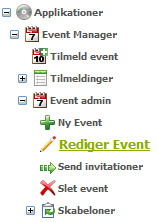 On the menu on the left click "Applications", "Event Manager", then "Event Admin" and "Edit Event":