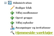 To find the code to insert on the website, click "Administrate" under the club, and click "Homepage Tools".