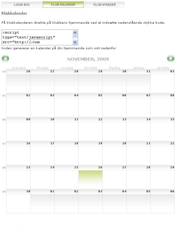 Note: For the calender to be shown, the club must be published to the internet on BowlingPortalen. For instructions, read the guide