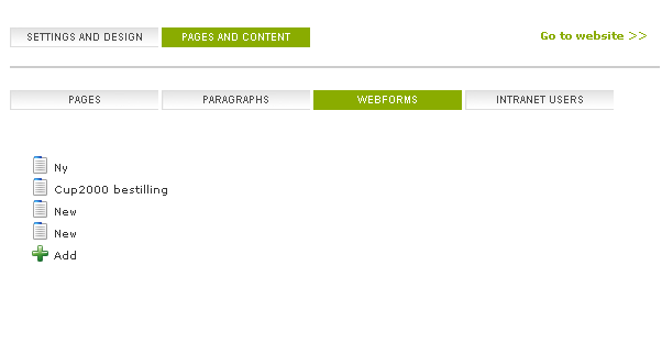 Here you can create a new webform by clicking on the "Add" link present o the left side bottom of the page.