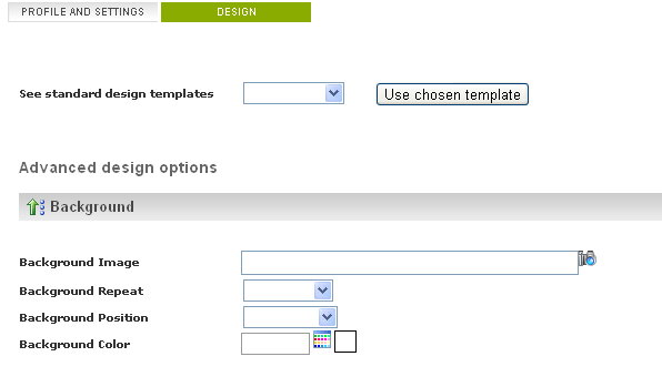 When you click on the "Background" option displayed below the advanced design options, the following page gets displayed.