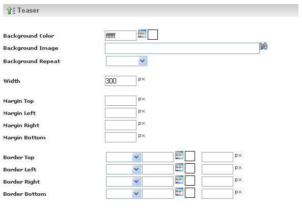 When you click on the "Teaser" option, in the advanced design options panel, the following options get displayed.