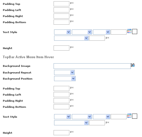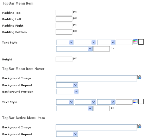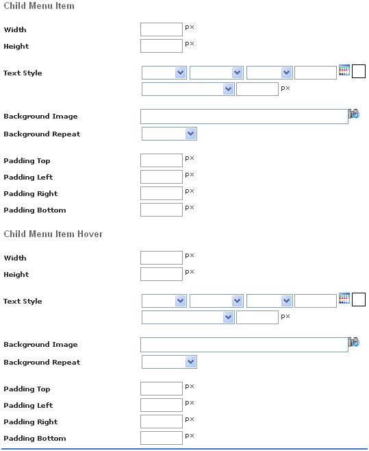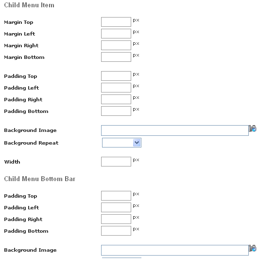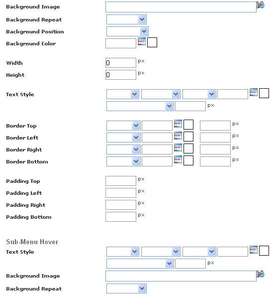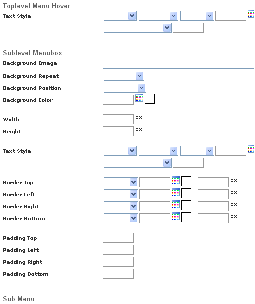 Sub level menu box resides below the Top Level Menu, when you click on any top level menu item which contains the sub menu items, sub menus appear. We can set the style for the sub menus using Sub menu section.