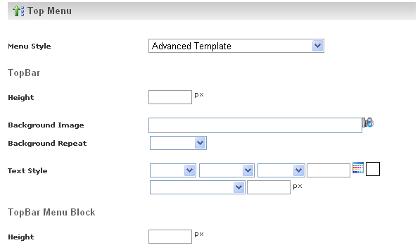 If you select the Advanced Template as your Menu Style, then the following options get displayed.