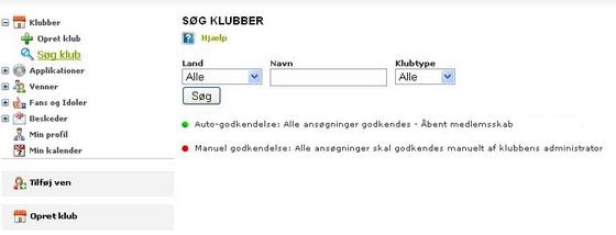 When searching for a club you have the option to filter by country, club name and club type. When you have typed in your search criteria, press Search and a list of clubs will be generated.