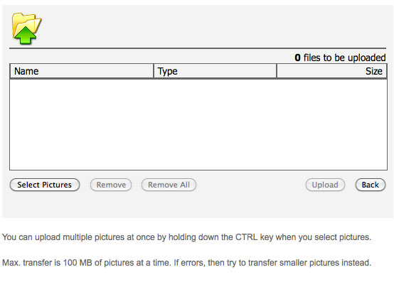 When the pictures are selected, transfer them by clicking on the button "Upload".